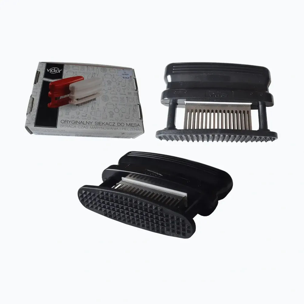 VictorSiekacz tłuczek nakłuwacz do mięsa Victor to profesjonalne narzędzie stworzone z myślą o kuchniach domowych i gastronomicznych. Dzięki 51 chirurgicznie ostrym ostrzom ze stali nierdzewnej skutecznie nacina włókna mięśniowe, poprawiając strukturę, kruchość i soczystość mięsa bez jego miażdżenia.